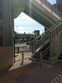 エレベーターのすぐ近くにある歩道橋の階段をあがってくださいね。
