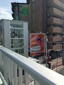 今里筋に出ると右手にエレベーターと歩道橋が見えますので、そちらに向かって歩きます。